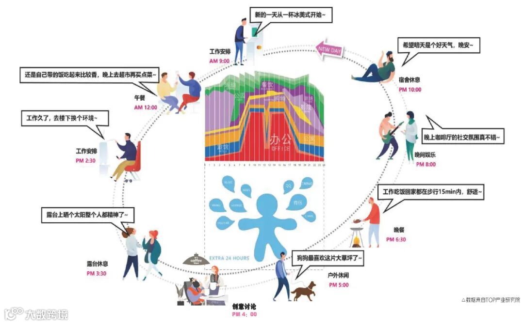 基于客户的特征和诉求,德必根据都市白领工作时间的分配,去设计办公空间的体验感。