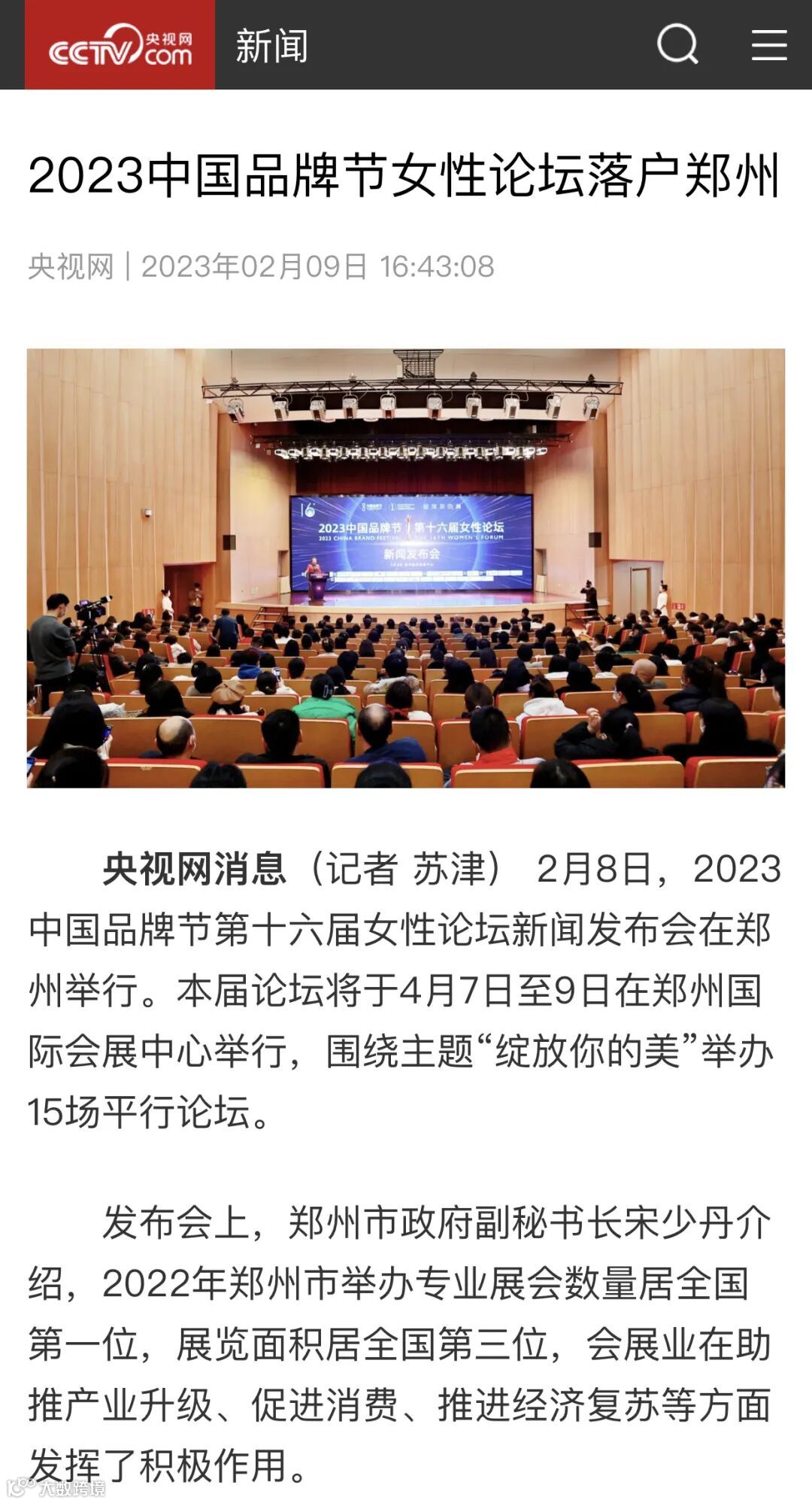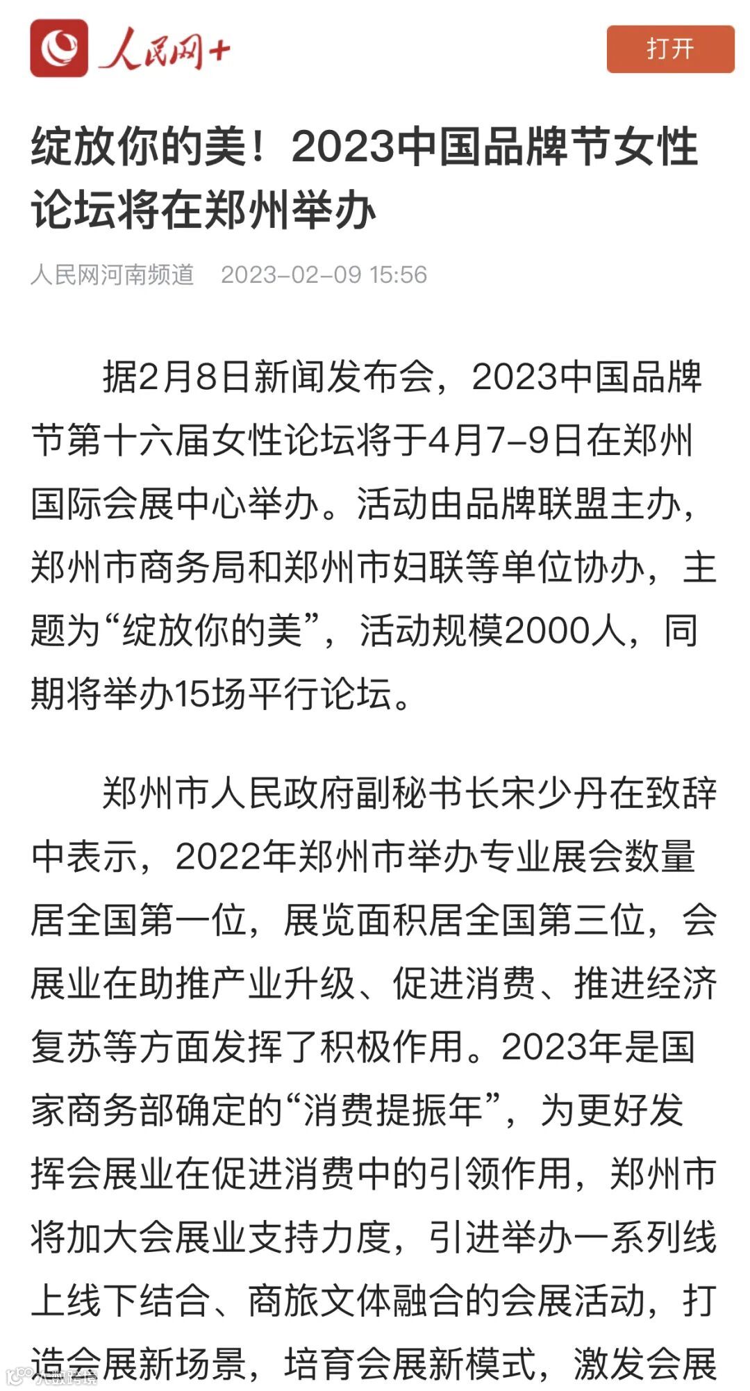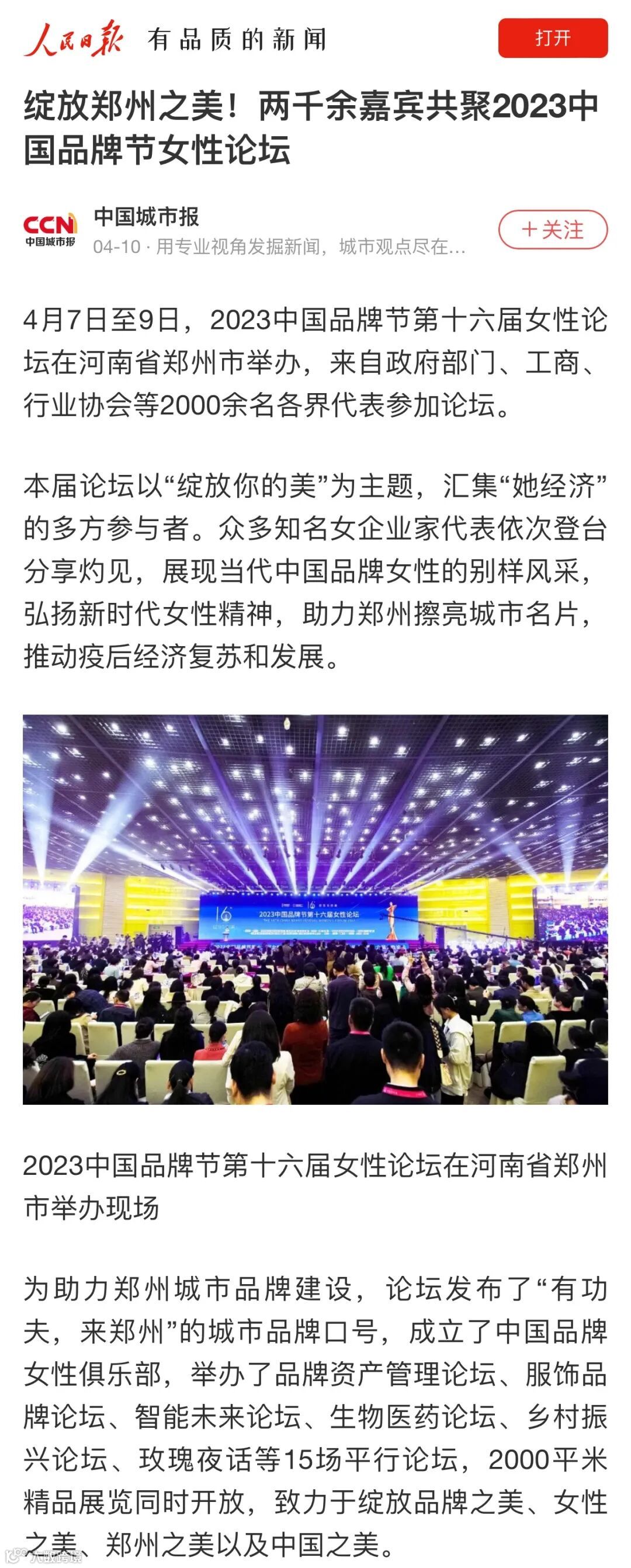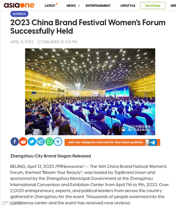 近日,由品牌联盟(Topbrand Union)主办、郑州市人民政府支持的2023中国品牌节女性论坛在郑州国际会展中心成功举行,开幕式超2500人出席,三天会期间5000多人次与会。