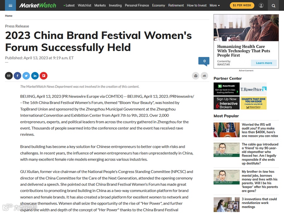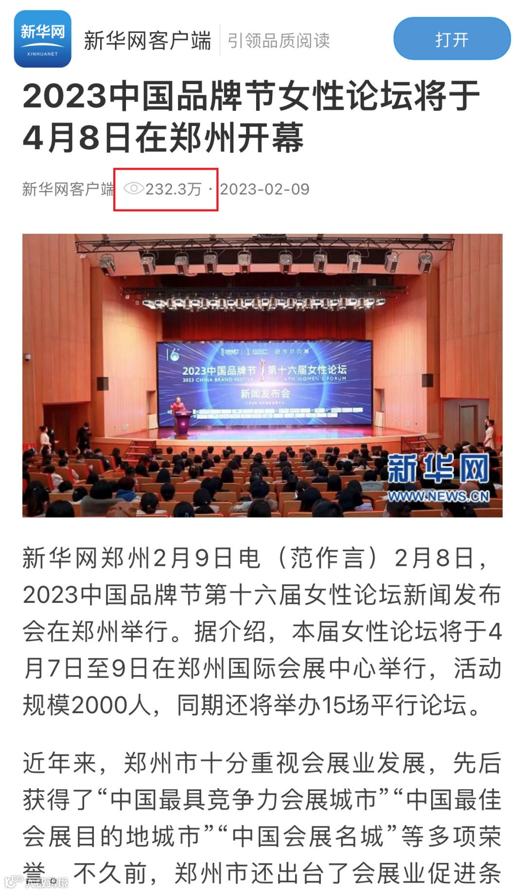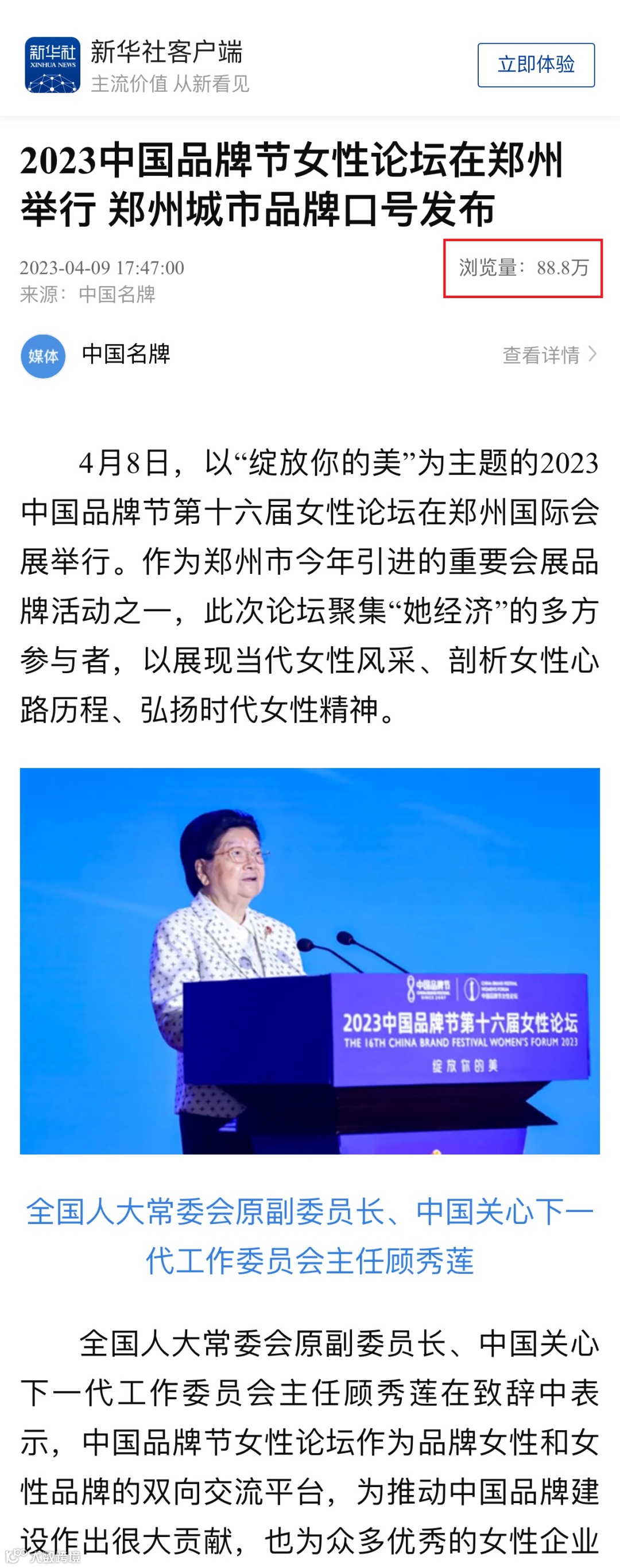 近日,由品牌联盟(Topbrand Union)主办、郑州市人民政府支持的2023中国品牌节女性论坛在郑州国际会展中心成功举行,开幕式超2500人出席,三天会期间5000多人次与会。