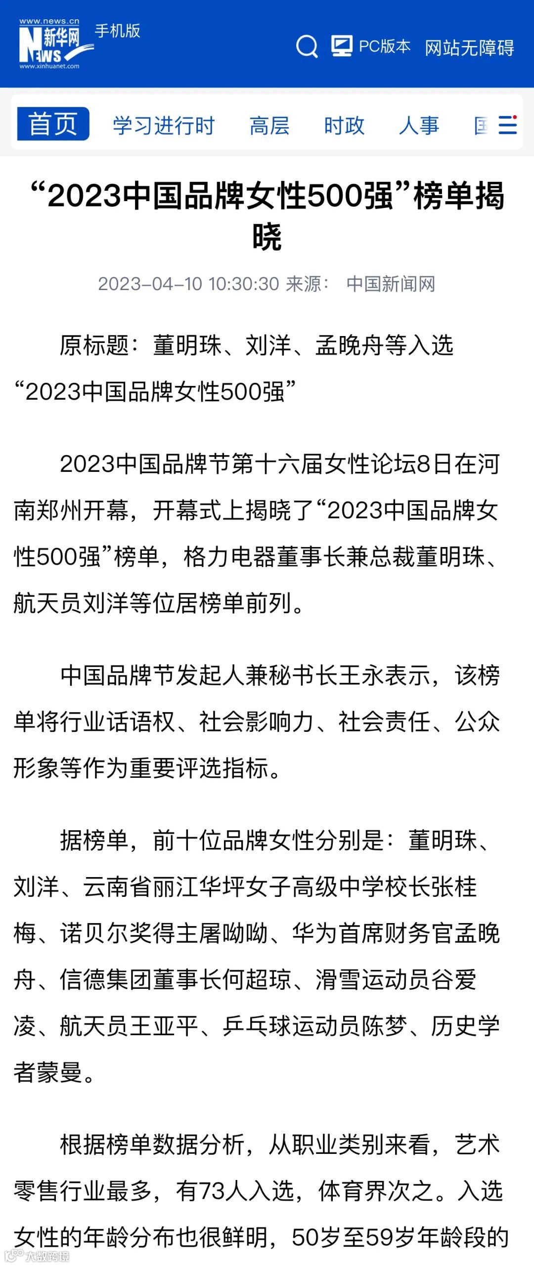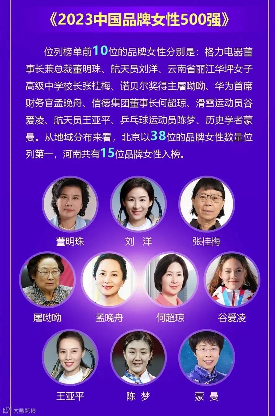 桥中创始人黄蔚位列榜单,位列榜单前十的女性有董明珠、刘洋、张桂梅、屠呦呦、孟晚舟、何超琼、谷爱凌等。