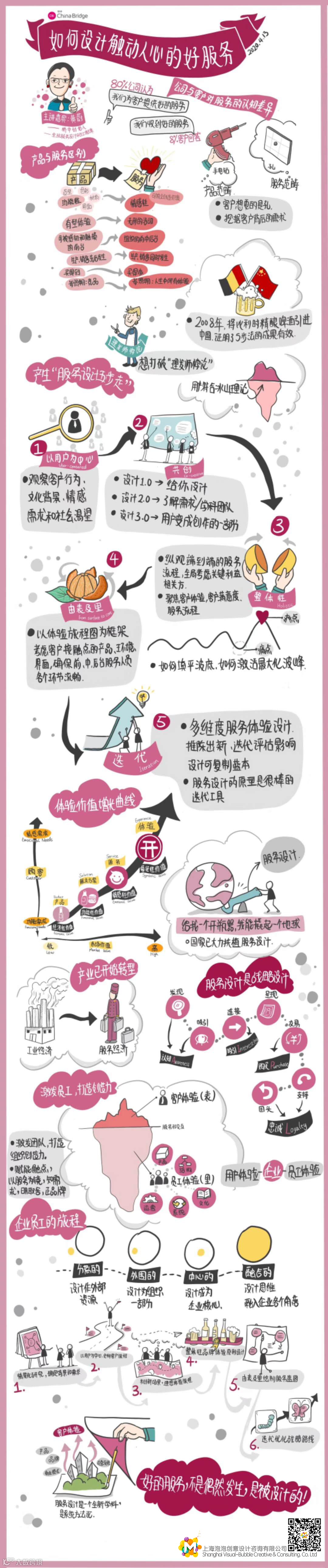 最后,回到最本质的问题,如何设计触动人心的好服务?关键在于消除公司与客户对服务的认知差异;这就需要借助服务设计的五大原则——以用户为中心、共创、整体性、由表及里以及迭代。借用黄蔚女士在直播中说过的一句话总结:“好的服务不是偶然发生的,是被设计的!”