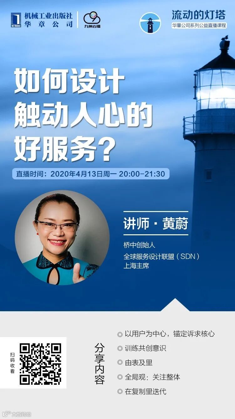 4月14日周一,桥中创始人黄蔚应华章邀请参加一场线上直播,以“如何设计触动人心的好服务”为主题进行了分享。
