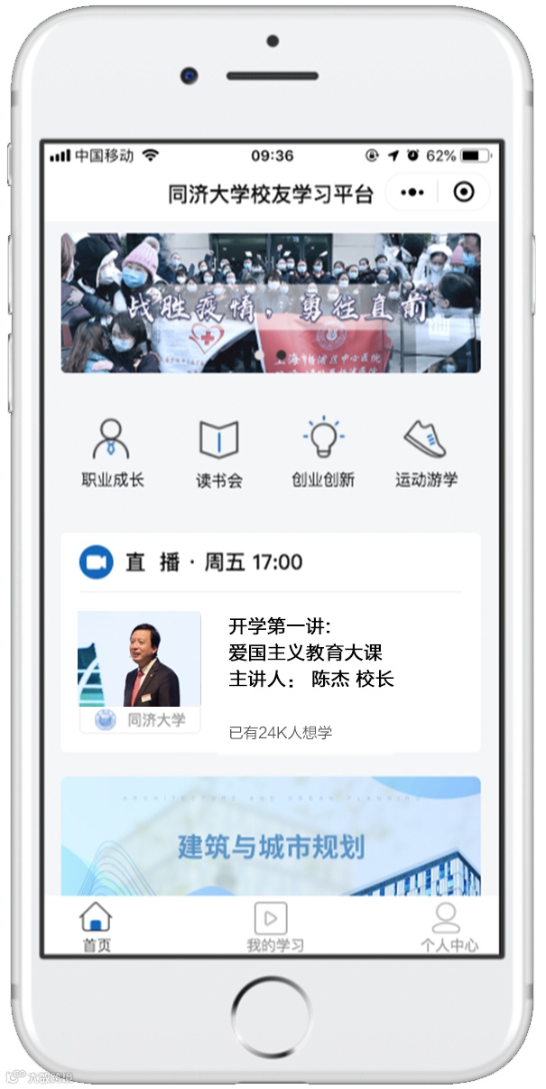 党的十九届四中全会提出,构建服务全民终身学习的教育体系,搭建以学习者为导向的资源共享平台。校友终身学习平台可以同时对接学校、校友和社会的优质教育资源,通过技术手段,提供方式灵活的学习机制。校友终身学习平台的推出,也是同济大学作为全国首批十所“三全育人”综合改革试点高校的又一尝试,校友不仅是“全员”育人的一支力量,大学为校友提供终身教育,进行“终身质保”,真正形成学生从入学到毕业后的成长成才“全方位、全过程”育人。校友终身学习平台还将开发校友服务的线上工具,成为校友工作的“数字新基建”。