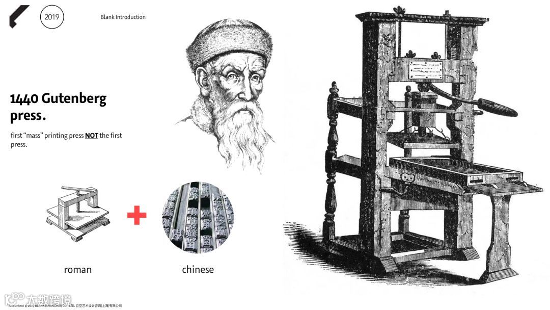 1440年 Gutenberg 发明了首个“商业印刷机”,而实际上他并不是凭空发明了印刷机,而是在受到了罗马的印刷版和中国印刷术的启发下而设计出了世界上首台“商业印刷机”。