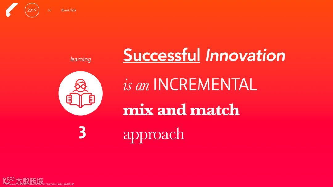 通过这些例子我们可以得出成功的创新是递进性的灵感匹配和混合的方法,而评断是否成功的标注则是是否聆听了解消费者需求从而设计出新的 iconic 的产品而不是仅仅是另一个 copy 的产品。