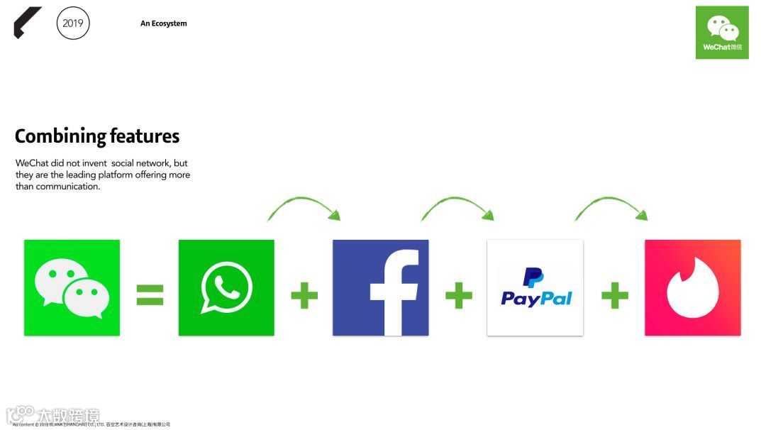 3. 微信 - 这个对于大家都非常熟悉的软件,其设计的灵感来源于What's App,后来在不断的迭代过程中不断得受到其他的软件的启发,加入了新的社交,电子支付等属性职能,让微信逐渐变成了一个多功能的软件。如今,微信的小程序的出现更大大地推动了微信的功能。Facebook Messagenger 副总裁,甚至公开地透露,他很嫉妒微信,因为对于他来说,现今的微信是能启发产品设计的一个软件。
