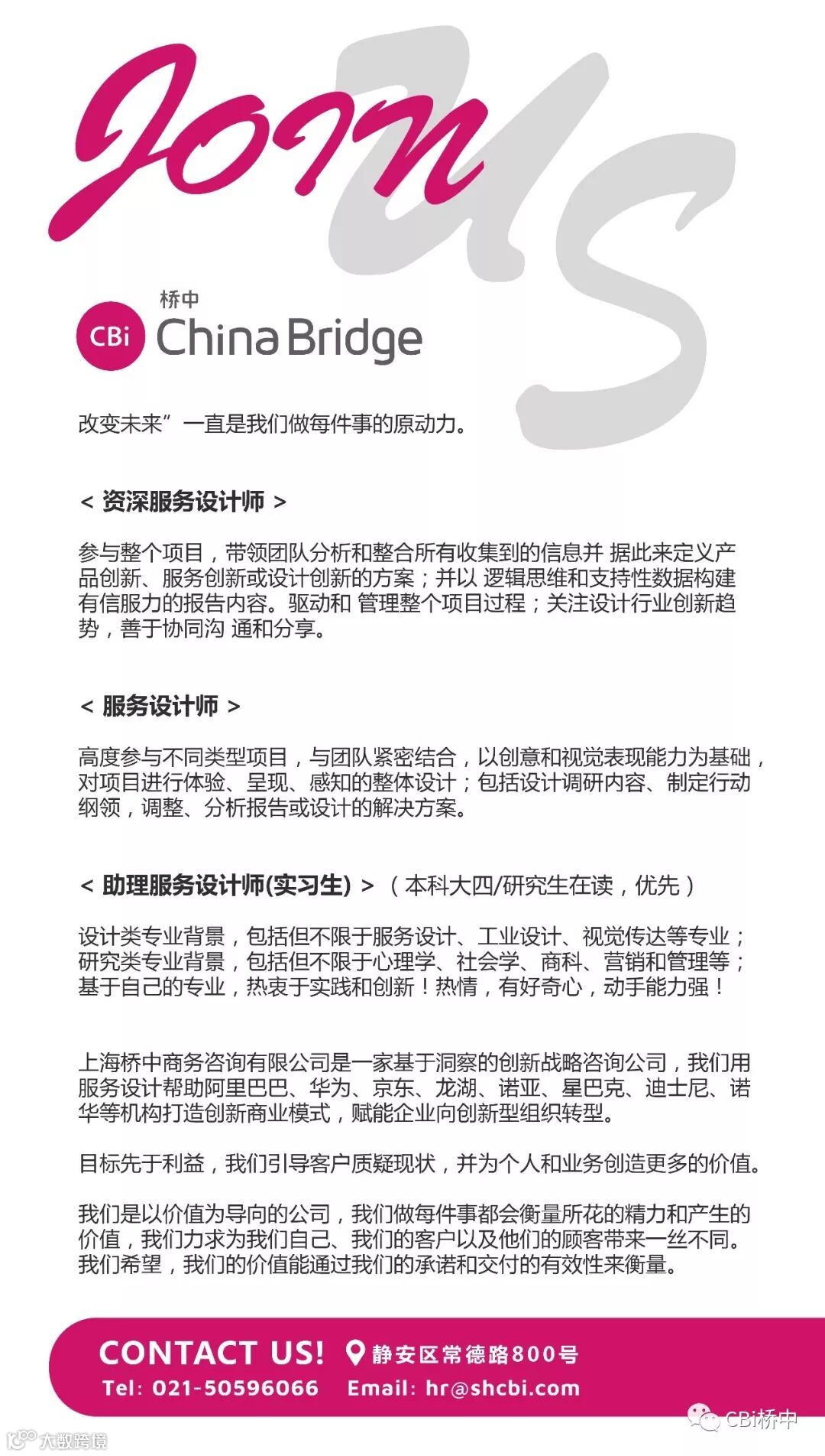 关于桥中:作为中国服务设计的头部企业,桥中不只是一家公司,更是一个平台。桥中每年将20%的时间与精力投入在非营利的项目中。同时,我们以开放的心态积极推动服务设计的传播,推动服务设计行业的发展。这是桥中作为一个社会企业的责任感和价值观所在。