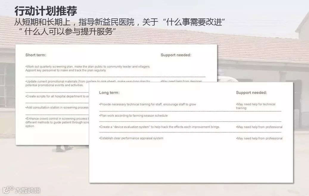 桥中创新的团队同时为ViP制定了新的行动计划,从短期和长期上,指导新益民医院,关于“什么事需要改进” “ 什么人可以参与提升服务”。