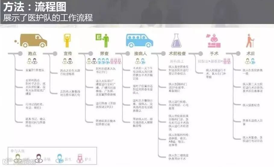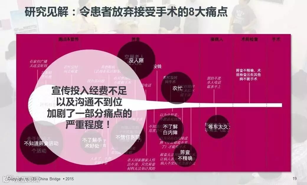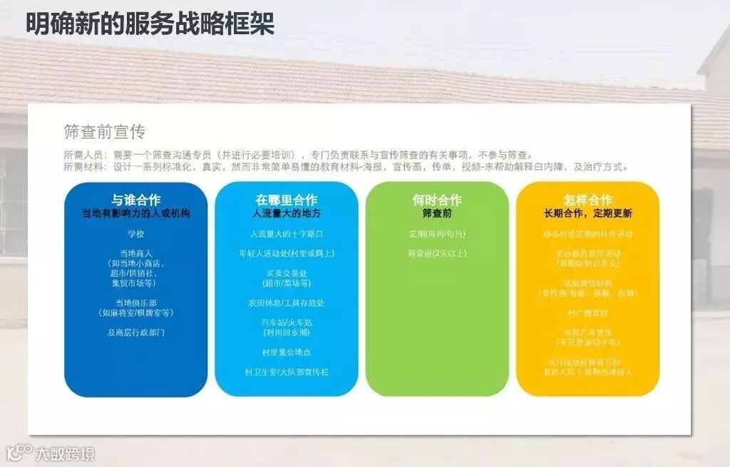 比如因为不同村子的农作物不同,农忙时间不同,所以根据各个村子农忙时间的差异,灵活安排去各村免费检查时间就能明显提高获客数量;选择人流量大的十字路口,年轻人聚集的市场、网吧,农田休息间隙在工具存放处去做筛查沟通,而不是随机的马路边或者挨家挨户,避免了人不在家、单独预约等前置困难,且一开始就让家里的劳动力、年轻人介入,减少家人不知晓、手术没人陪、老人对手术重要性认识不清等后期问题;提前做好路途规划和时间规划,包括接送时间、等待时间,强调误差存在及可能,并在推广筛查的时候同期播出时间表,让接受筛查的家庭有合理预期,大大降低了因为信息不对称导致的中途退出,并以及由此带来的口碑下降、信任危机。