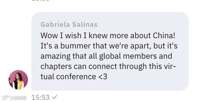 “哇哦,我真希望我能更了解中国!虽然疫情隔开了我们,但是能通过线上大会把全球连接在一起真是太棒了!”