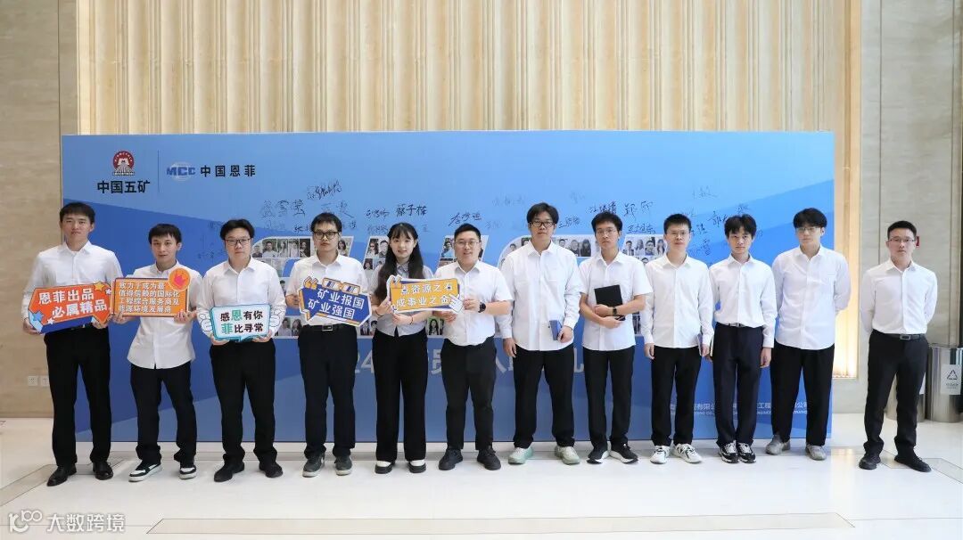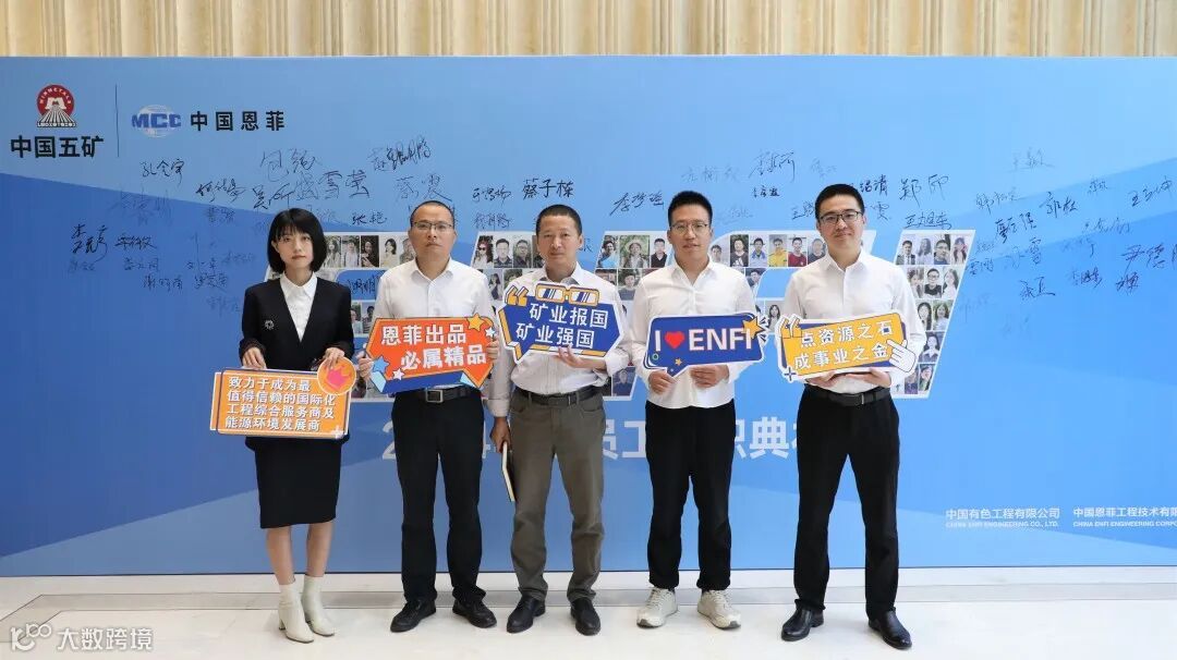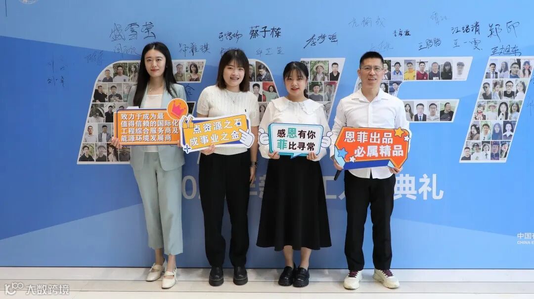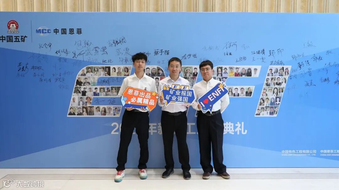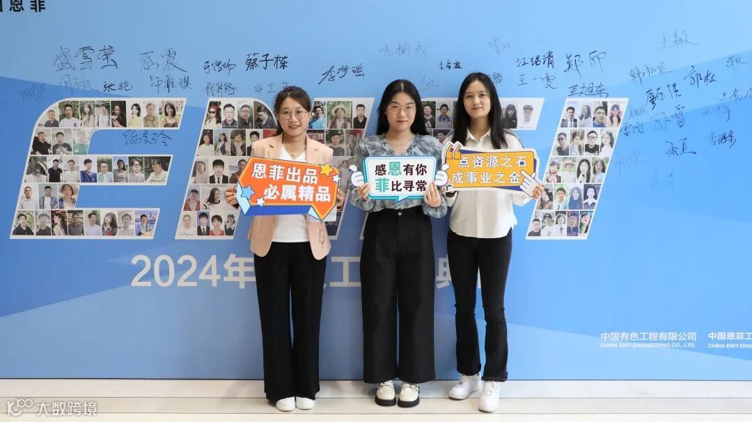 典礼前,新入职员工在签名墙上签名并合影留念。