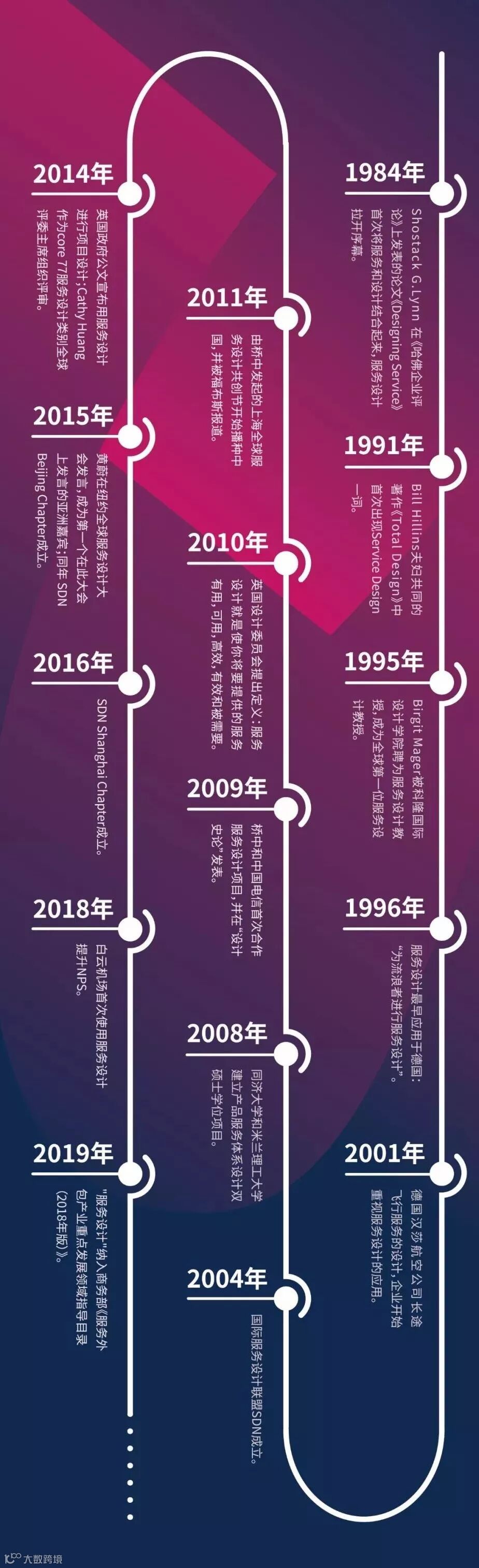 1995年,伯吉特·玛格(Birgit Mager)成为全球第一位服务设计教授;2004年,Birgit Mager创立全球服务设计联盟SDN。Birgit Mager 说:“最高级别的服务设计是帮助企业实现商业模式转型。”(点击查看更多)