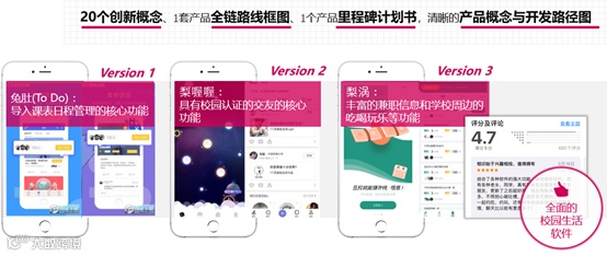 通过切入这些真实需求,与大学生共创和测试,最终在项目中共产出400个场景共识、20个创新概念、1套产品全链路线框图、1个产品里程碑计划书。