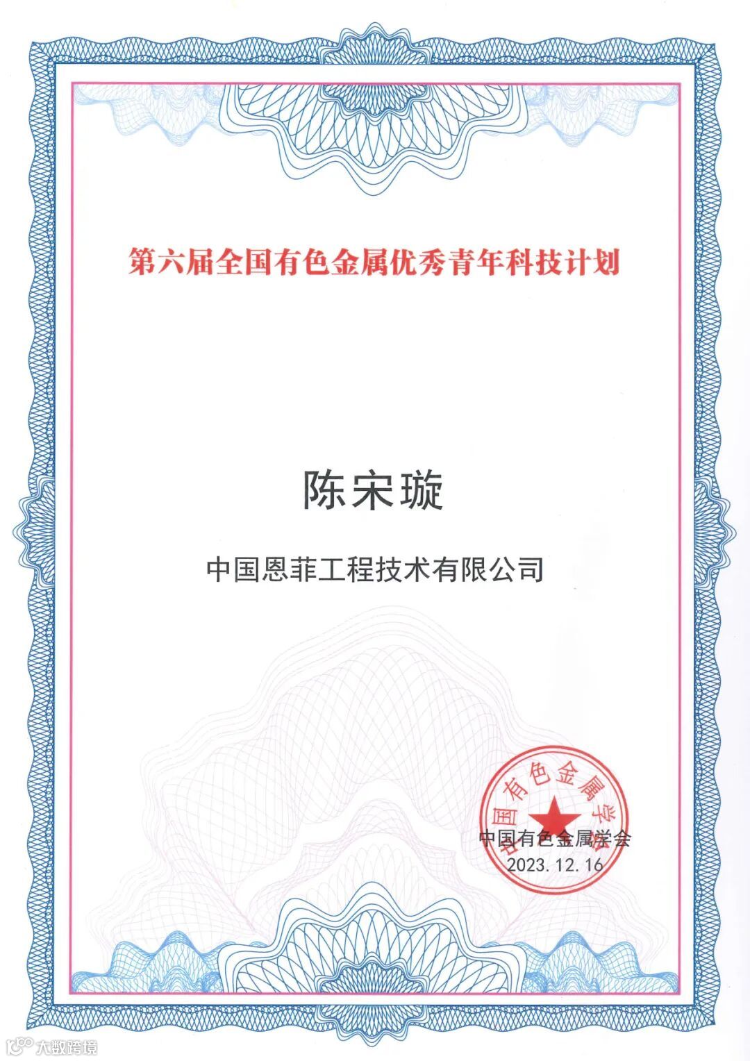 近日,中国恩菲两位专家入选青年人才计划,其中郭帅入选中国科协青年人才托举工程,陈宋璇入选全国有色金属优秀青年科技计划。