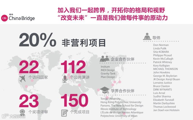 桥中很荣幸能与世界最顶尖的跨国企业、创业公司以及非政府组织等共事。