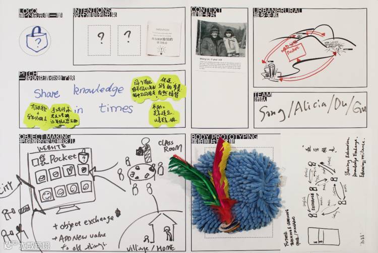 设计内容 :这个方案有两个对未来的假设,一是城乡的割裂会更加巨大,城市人会越加不熟悉乡土生活的方方面面,反之亦然;二是人们看事物的观点会更加的多元和丰富。基于这两个未来的趋势,方案设计了一个知识分享平台叫做POCKET,任何城市或是乡村中的孩子都可以把他所看到生活中不清楚或是有意思的东西放到平台个进行分享,而任何人都可以看到并给与解答,同时再定义这件物品的新用途。从本质上,这样的做法是将“共享经济”的概念应用到了“知识”分享上。