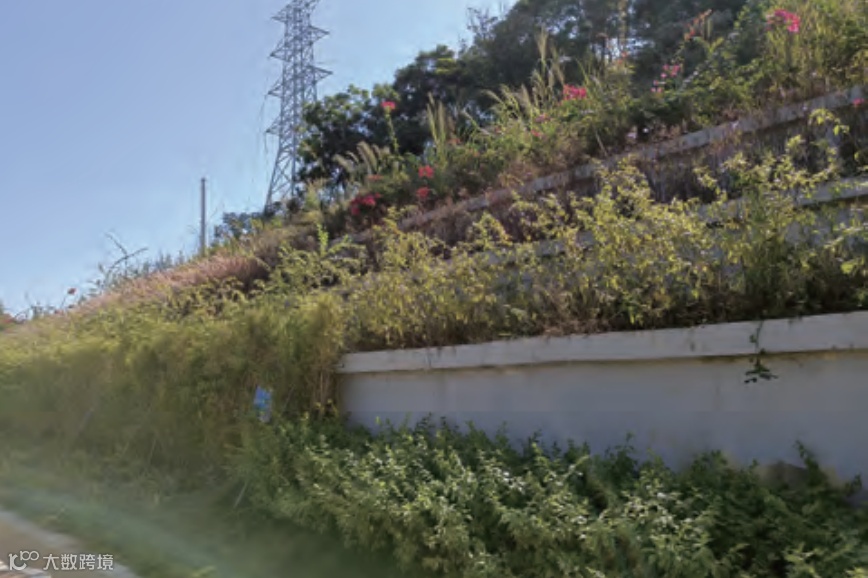 设计与绿化相结合的生态边坡防护。本项目设计在爱民路东段挖方边坡侧增加护脚挡墙,并在墙顶种植了杜鹃,对护脚挡墙进行绿化遮挡;对边坡采用喷播植草、三维网植草、生态袋堆叠防护等方式进行生态护坡,兼顾了防护与环境两方面的功效,与现状自然环境协调统一,使其对环境的破坏影响达到最小。