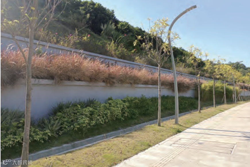 为保护生态环境,本项目在道路设计引入海绵城市的设计理念,结合海绵城市规划中提到的“净、蓄、滞、渗、用、排”等措施,慢行道采用透水铺装,绿化带采用下凹式绿化带设计,便于收集和下渗径流雨水。在机动车道侧石间隔开孔作为过水通道,保障径流雨水汇入,下凹式绿化带内设置溢流口,控制雨水流速并与市政管道相衔接。另外在绿化带内采取了必要的防渗措施,防止径流雨水下渗对道路路面及路基的强度和稳定性造成破坏。