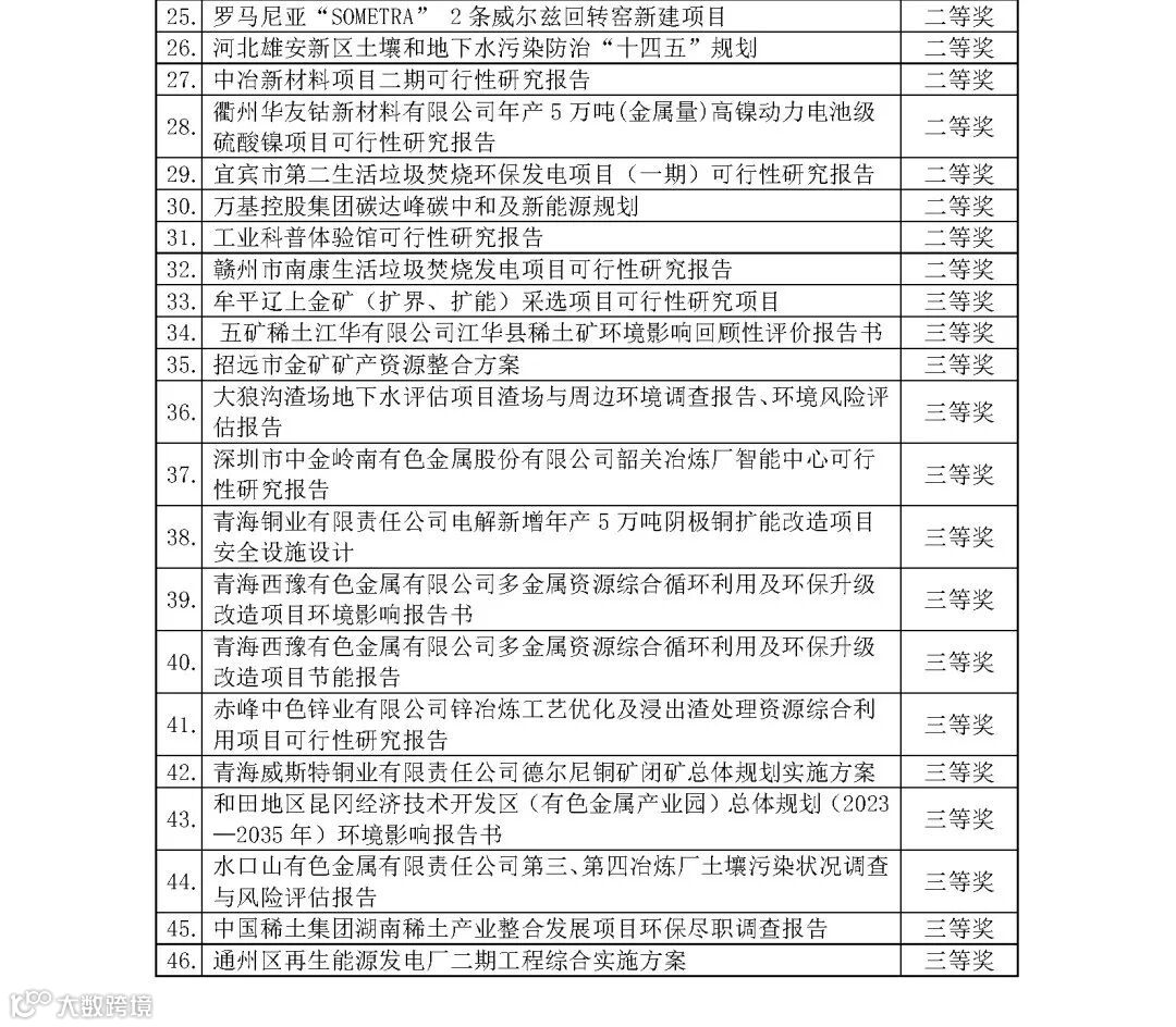近日,中国有色金属建设协会发布《关于公布2023年度有色金属建设行业工程咨询、勘察、设计及信息技术成果评价结果的通知》,中国恩菲64项工程咨询、设计、信息技术项目获奖,包括16项设计成果、2项信息技术成果及46项工程咨询成果。