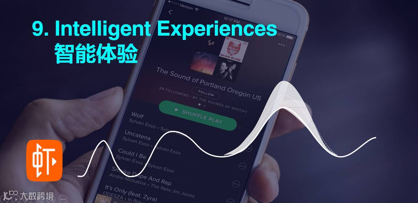 9. 智能体验:互联网大数据,比你更懂你。虾米等音乐类APP根据客户的听歌习惯,利用智能算法测算和推送个性化的歌手和歌单。今日头条的标语也很形象地诠释了这一点:“你关心的,才是头条”。