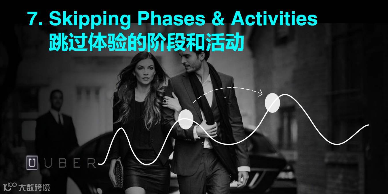 7. 跳过体验的阶段和活动:Uber和滴滴用信用卡或支付宝等自动支付功能,省去了计程车支付过程。另外,他们可以帮你跟踪整个行车路线,一旦有司机故意绕路,你在手机上就可以一目了然。梳理一下你的服务旅程,尝试跳过一两个环节,说不定会给你带来意想不到的惊喜哦!