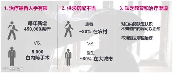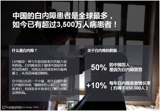 当时在中国有超过3500万人被诊断患有白内障,它被视为最顶级的“黑暗使者”之一,占了580万个失明病例的一半。随着中国加速进入老龄化社会,白内障患者人数预计在10%的年增长率。