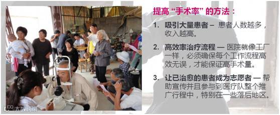 他们选择了山东省郯城的一家小型私立医院进行试验,给当地居民提供免费的眼科检查,在过程中发现白内障患者,让他们进行手术治疗。但经过一年的努力,手术转化率只达到35%,远远落后于印度的90%!