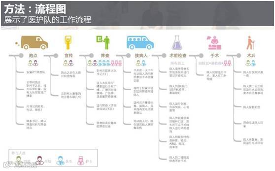 比如一个服务流程可以通过角色模型、用户体验地图、服务路径、关键人物地图等进行分析。分析的核心是如何提供服务以更好地满足人们的需求。而这样的服务既包括市场上已经提供的满足显性需求的服务,也包括新设计的针对潜在需求的服务。