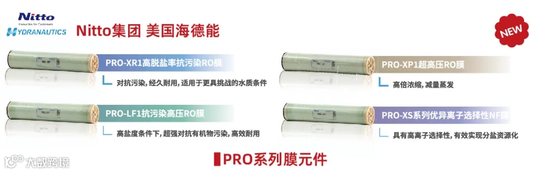 海德能,在高难度废水处理的膜应用研发过程中探索出了一条近零排放的工艺路线图,PRO系列就是高端水处理的代名词。高脱盐抗污染的PRO-XR1在宁夏某煤化工项目实现98.5%以上脱盐率,通过CIP频率的降低减少了约50%化学清洗成本;PRO-XS分盐纳滤膜在佛山某印染工业园区,完全抗住了高含盐、高碱度、高水温、高有机物浓度的“四高”挑战,副产盐浓度达到99%,年产量近10万吨。