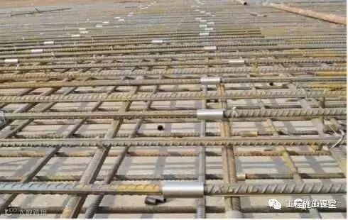 (4)双层钢筋网应在上层钢筋网下面应设置钢筋撑脚,以保证钢筋位置正确。