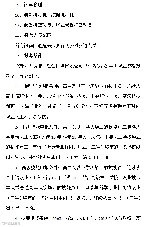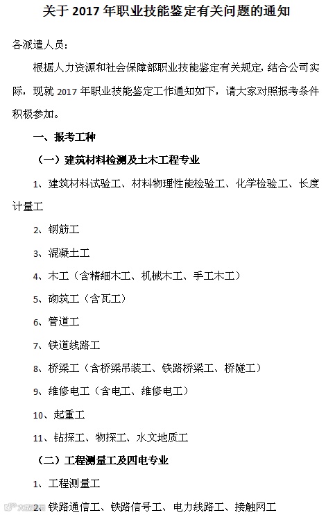 导读:根据人力资源和社会保障部职业技能鉴定有关规定,结合公司实际,现就2017年职业技能鉴定工作通知如下,请大家对照报考条件积极参加。