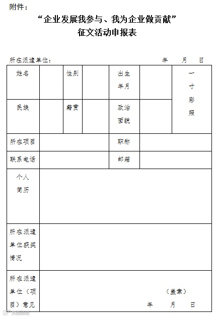 “企业发展我参与、我为企业做贡献”征文活动申报表