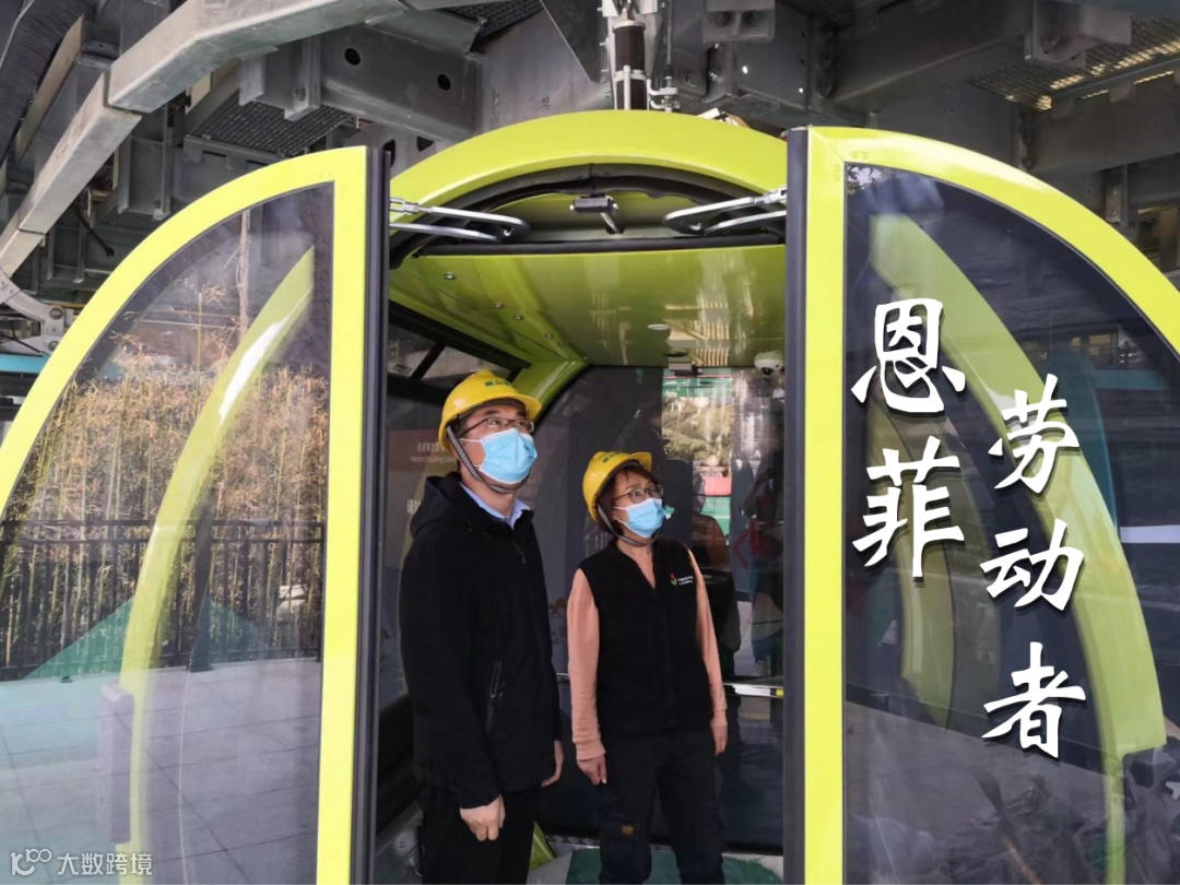 索道事业部项目经理刘英林和电气负责人赵楠在青岛崂山仰口索道改造工程进行索道投运前检查工作。