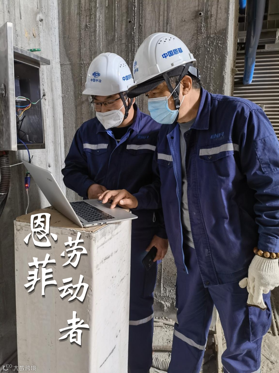恩菲数字智能技术公司现场施工经理甘宝忠在对襄阳恩菲生活垃圾焚烧发电厂技改项目智能工厂基础工程的DCS I/O通道进行检查。