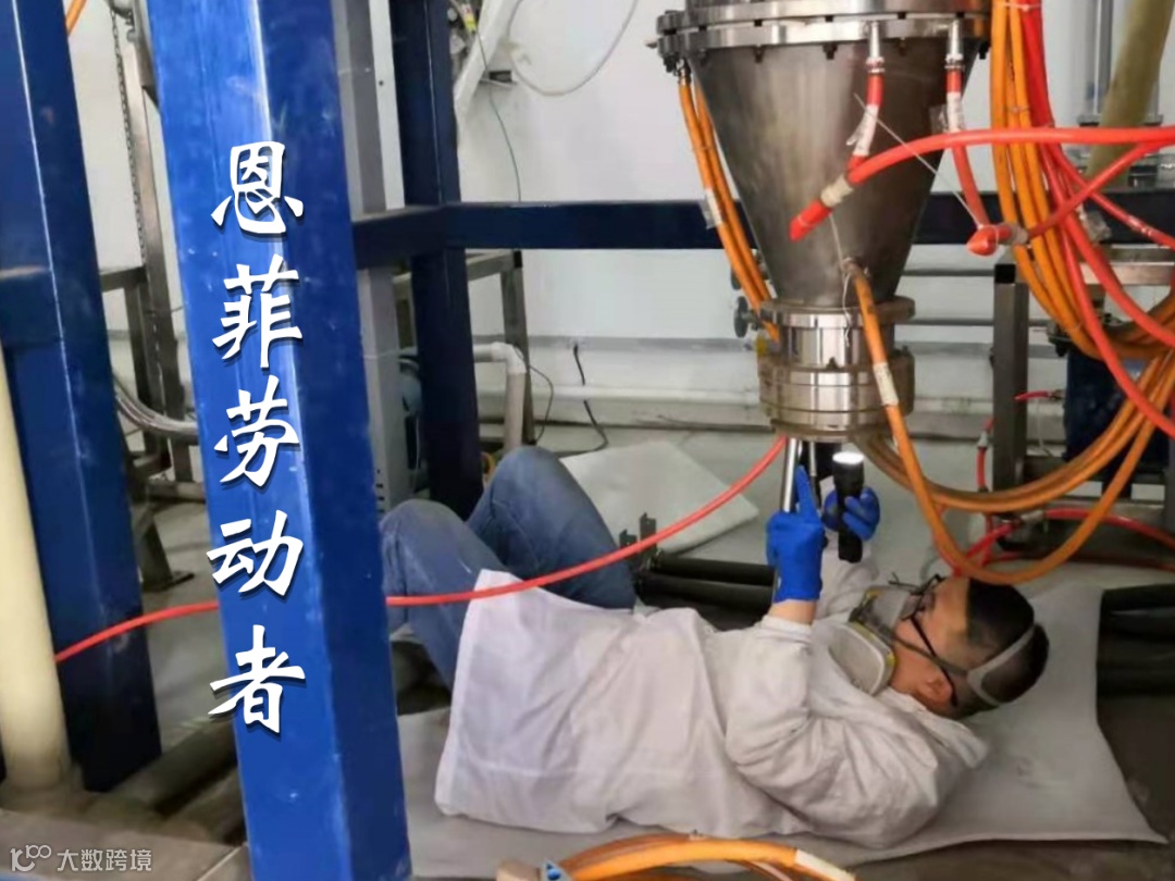恩菲研究院杨涛博士正在检查等离子体设备纳米硅基粉体的连续制样情况。