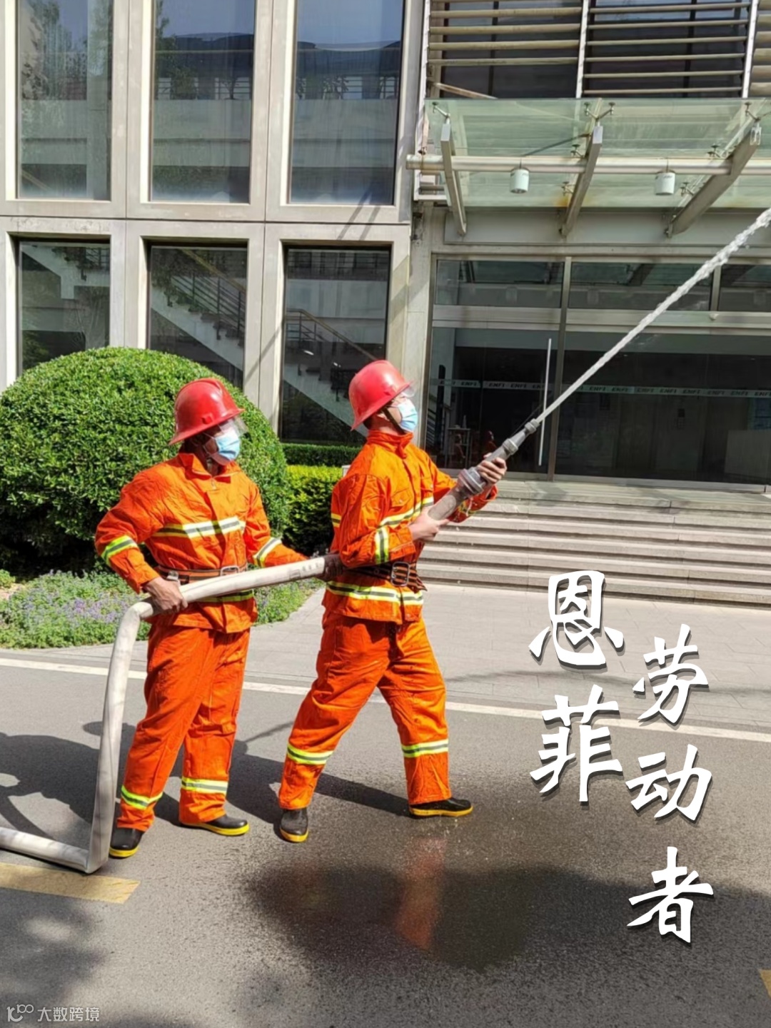 恩菲物业微型消防站队员许永财和赵亚东在队长的指挥下开展模拟实战拉练。