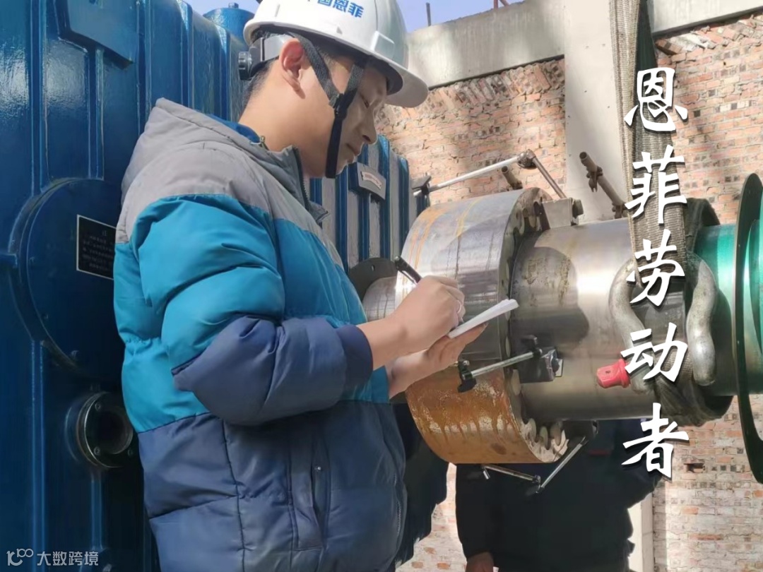 固安恩菲汽机专业工程师王士博在固安县生活垃圾焚烧发电厂进行汽轮机点检。
