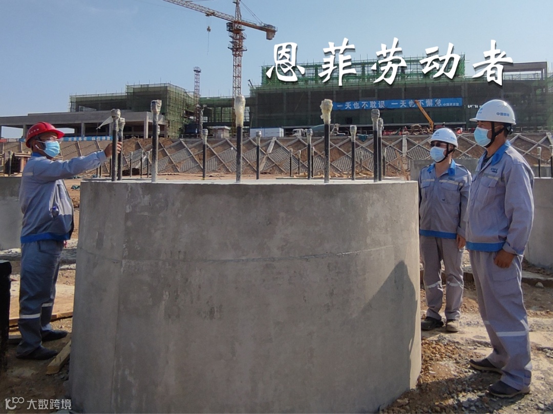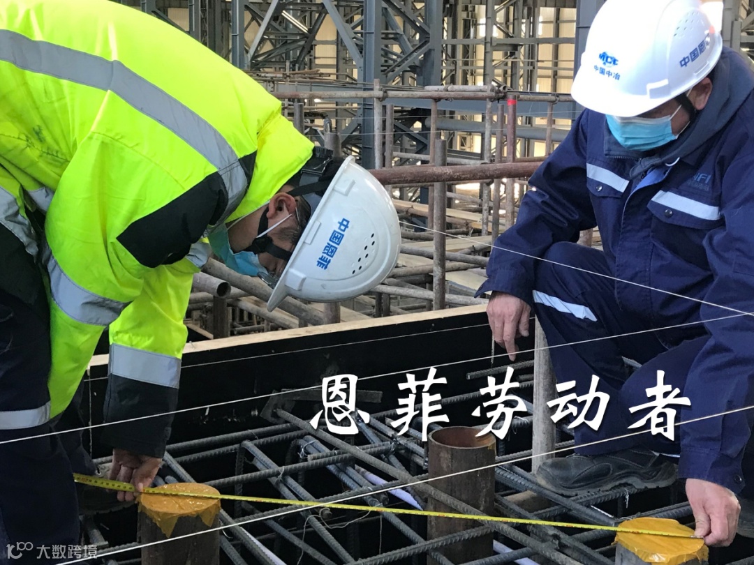 能源环境事业部土建专工屈登涛和设计工代石佳保在赣州市南康生活垃圾焚烧发电项目对焚烧厂房基础短柱钢筋进行验收。
