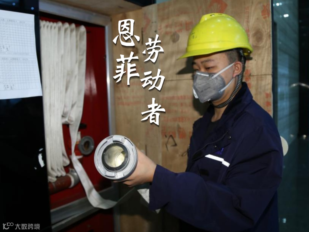 赣州恩菲运行部企业专职消防员谢益鹏正在检查赣州市生活垃圾焚烧发电项目的消火栓。