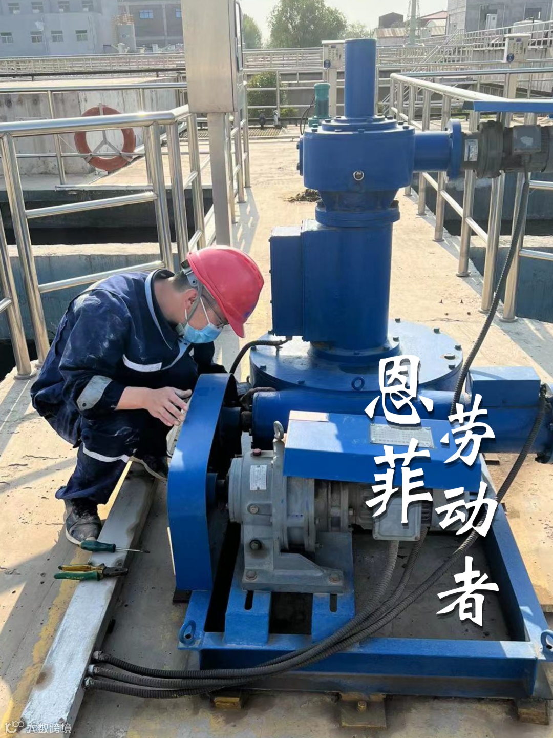 恩菲环保机修人员李建勋检查维修武陟县第三污水处理厂的刮泥机。