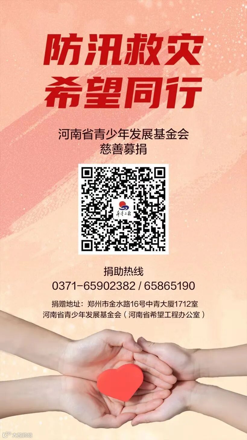 目前,河南省青少年发展基金会已收到上海青基会、重庆青基会、光华基金会、四川基金会、江苏青基会、黑龙江青基会、四川青基会等组织捐赠的防汛救灾款物。