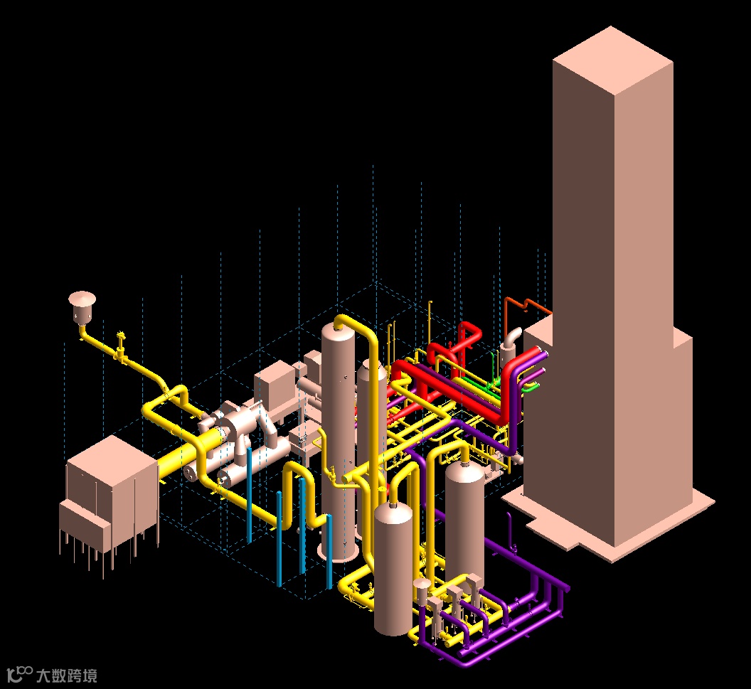 本项目中,中国恩菲首次采用PDMS三维制图软件进行大型深冷空分氧气站的设计工作,实现了各专业间设备、厂房、管道及电缆桥架等碰撞检查,在大幅提高设计质量的同时,使该项目的设计变更数量较其他同类型项目显著下降。