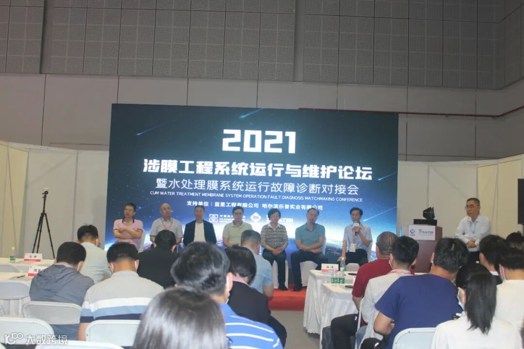 2021年6月3日,由中国膜工业协会主办,膜系统运行与维护分会联合EWATER易水环保网共同承办,上海荷嘉会展有限公司、国家环境保护膜分离工程技术中心协办,蓝星工程有限公司、哈尔滨乐普实业有限公司大力支持的2021涉膜工程系统运行与维护论坛暨水处理膜系统故障诊断对接会在上海国家会展中心隆重召开。作为上海国际水展的同期活动,本次论坛会议受到了来自全国各地以及海外的众多企业、单位、用户的广泛关注。膜系统终端用户、涉膜工程技术公司、膜系统保运服务单位及水处理药剂供应商、膜产品及其他膜系统配套设备供应单位齐聚一堂。中国膜工业协会理事长郑根江、运维分会秘书长苗伟、运维分会专家委员会副主任徐平、天津海化环境工程有限公司总经理陈爱民、华东理工大学化工研究所副所长马晓华副教授、盈德气体(上海)有限公司清洁能源运行高级工程师李雪梅、香港大学/北京化工大学特聘海外教授向湧、上海缘脉环境科技有限公司首席运行官吴效祥、东营市自来水公司南郊水厂生产办主任朱振良等近两百位嘉宾出席了本次论坛会议,近七万线上观众观看同期直播。