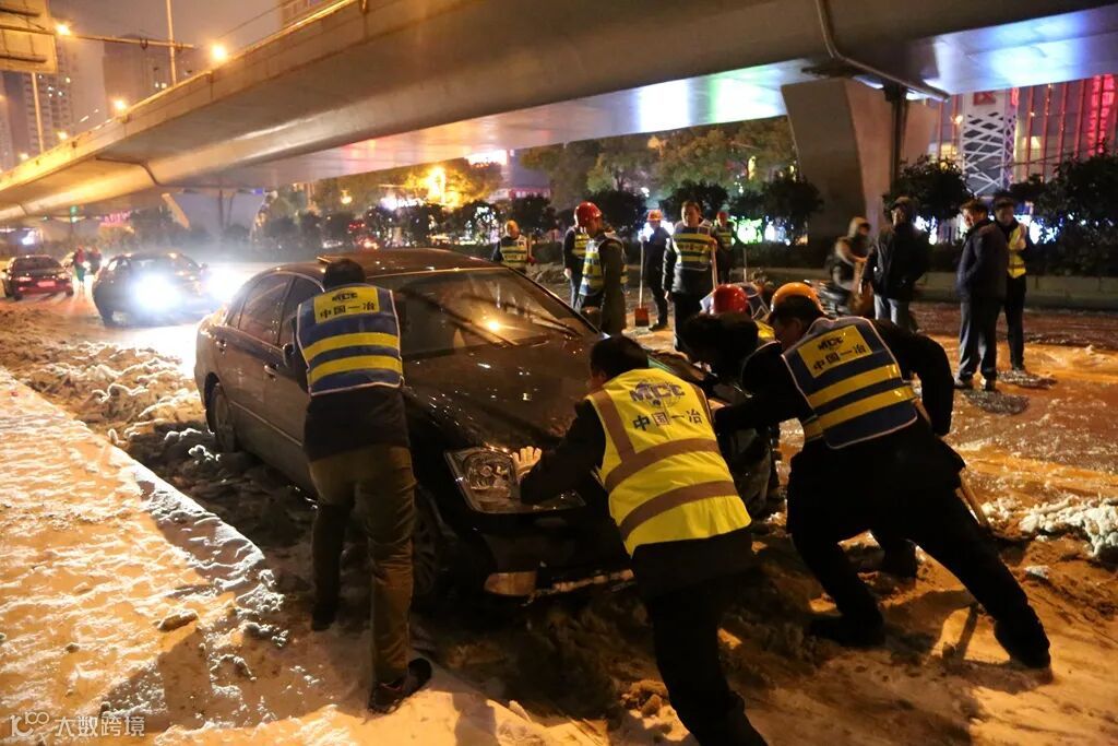 2018年1月27日,武汉市突降大雪,中国一冶迅速组织1400余人连续奋战24小时,全力保障武昌区中北路、青山区工业路、临江大道15公里城区主次干道的通行安全。