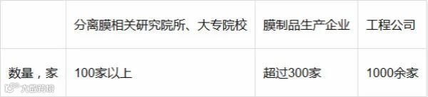 根据统计数据,2018年全国从事分离膜研究的院所、大学超过100家;膜制品生产企业300余家;工程公司近1000家。在分离膜几乎所有的领域都开展了工作,产品生产规模化,涉及反渗透、纳滤、超滤、微滤、电渗析等单元操作或集成的膜法水处理系统,气体混合物的膜法分离,液体混合物分离的渗透汽化膜过程,以及医用血液透析膜等。