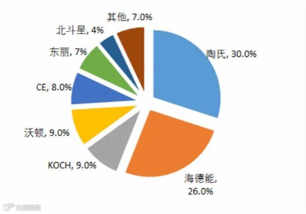 2018年中国膜市场主要品牌规模占比分析