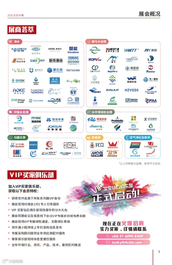 坐拥2.5万平米展示面积的北京水展由环保水处理、膜与水处理、净水、环境综合治理、泵管阀、仪器仪表、空气净化及新风7大主题展区组成,预计将汇聚800多参展企业和超过2万件展品。现场展示的水处理专业产品和技术横跨市政、民用与工业三大领域,为业内人士提供覆盖全产业链的水处 理技术与服务解决方案。
