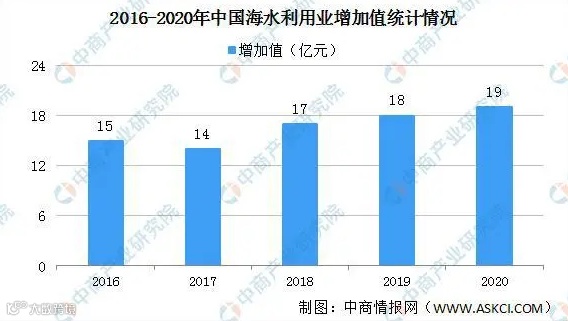 海水利用主要包括海水淡化、海水直接利用和海水化学资源利用。海水利用业稳步发展,海水利用项目有序推进。海水利用业增加值由2016年的15亿元增至2020年的19亿元。随着海水淡化科技研发水平提高,海水淡化工程建成投产,我国海水利用业规模将扩大。