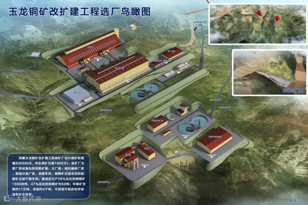 西藏玉龙铜矿位于西藏昌都市江达县青泥洞乡玉龙镇,是国内铜金属储量最大的铜矿之一,是国家工信部有色行业规划重点项目。公司承担的玉龙铜矿改扩建工程选矿厂总承包项目(以下简称“项目”)规模为年处理矿石1800万吨,分4个磨矿平行系列和2个浮选平行系列。