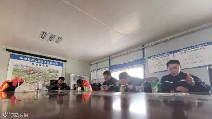 千山之巅,万水之源,这片神奇的土地也赋予了我们神圣的使命,玉龙铜矿的总承包建设正如火如荼的进行着。这里海拔虽高,但我们斗志更高:项目部为完成主体厂房封闭的工作目标,全体人员抢工期、赶进度,坚持吃住在现场,工作几乎不分昼夜,连续高强度的加班已然成常态化。施工现场虽缺氧,但从不来缺精神:白天解决施工问题,晚上熟悉图纸制定施工方案是项目部全体人员的“标配“,安全问题大家“一岗双责”,全年安全“零事故”。项目部全体人员冲锋在前,登高山、战严寒、走雪地、蹚泥路,在“屋脊顶上建屋脊,玉龙山上雕玉龙”。下图为项目部全体人员2020年大年三十的午餐。